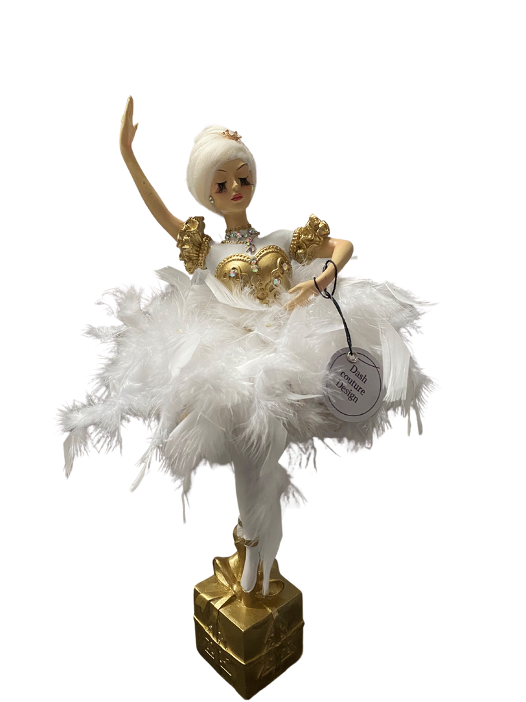 Indulge in the exquisite allure of our hand-painted and decorated ballerina, crafted with luxurious Marino wool hair and adorned with sparkling Swarovski crystals.