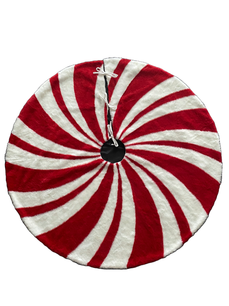 Add some finishing touches to your tree with this red and white faux fur tree skirt. This stylish tree skirt will complete your tree and make it tree stand out from the rest.