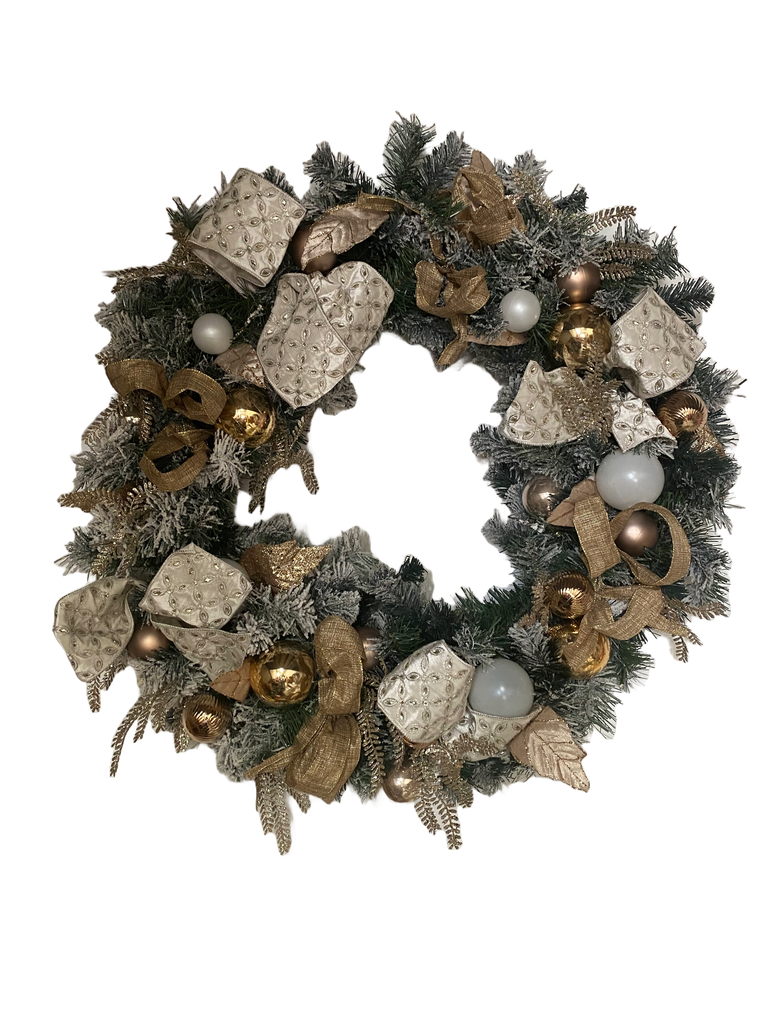 Welcome your guests with this Pre-Lit Christmas with this stunning large snow flocked wreath.
