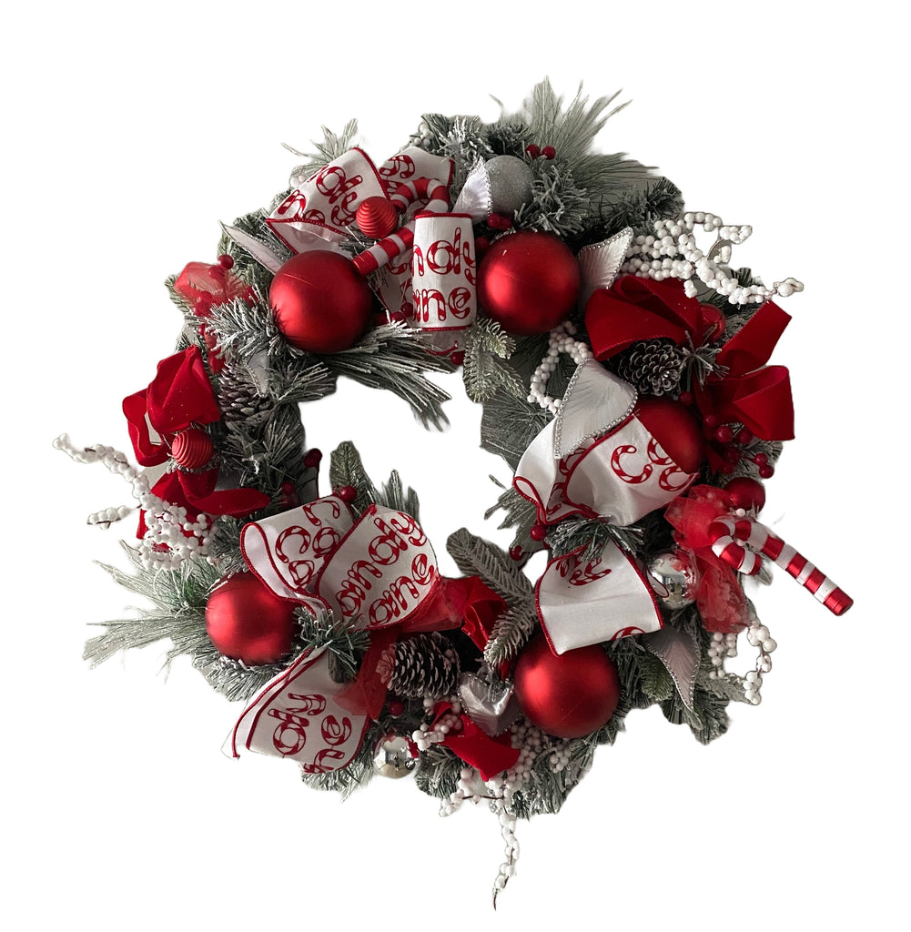 Welcome your guests this pre-lit Christmas with this stunning candy cane themed wreath.