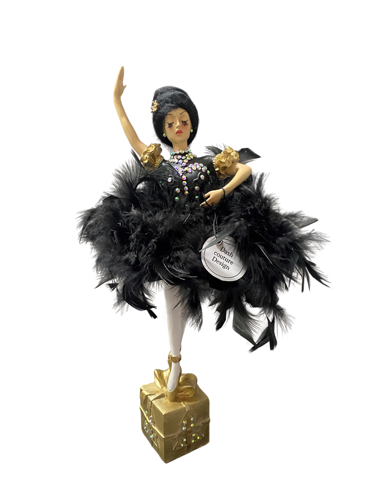 Indulge in the exquisite allure of our hand-painted and decorated ballerina, crafted with luxurious Marino wool hair and adorned with sparkling Swarovski crystals.
