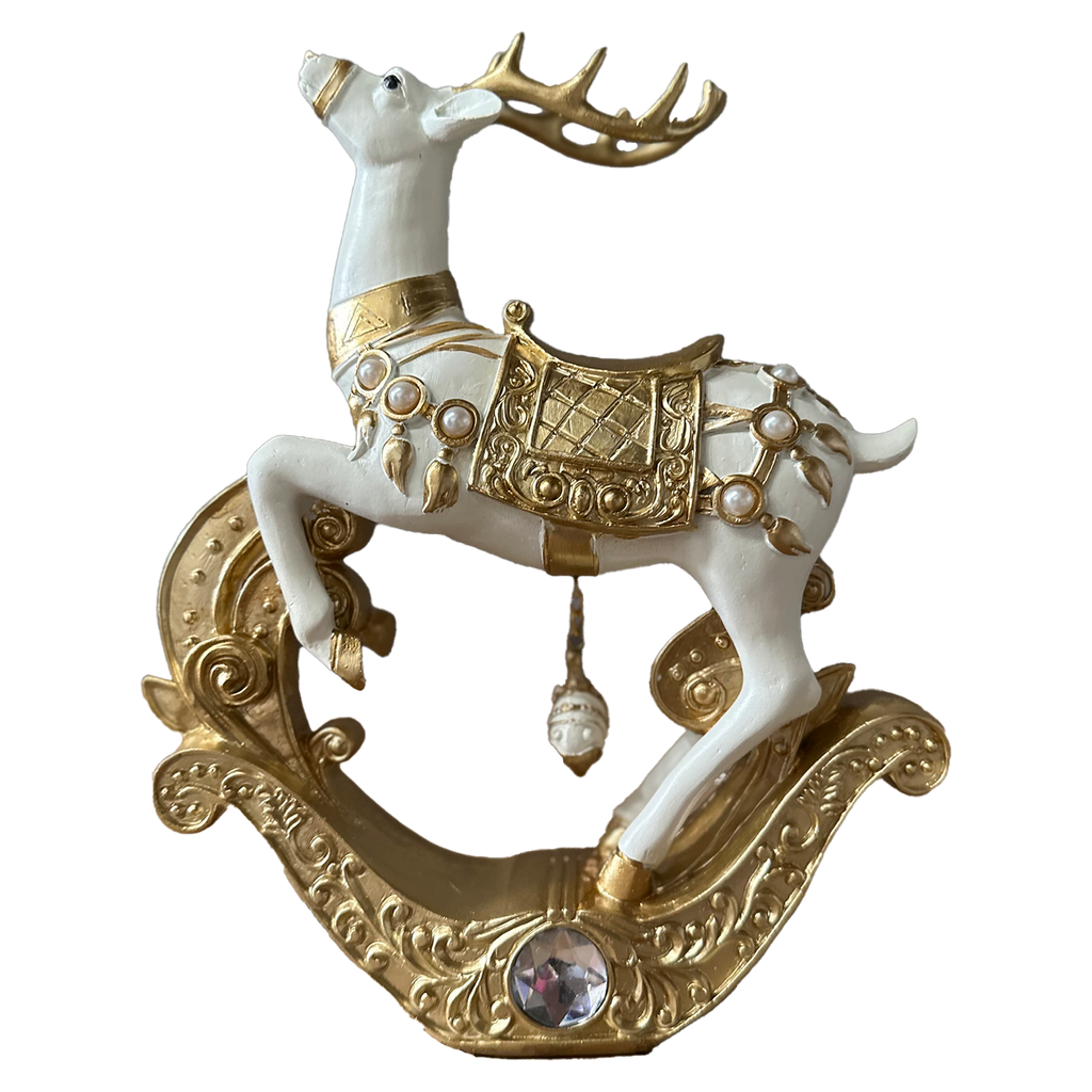 You will love this adorable gold and white reindeer with embellishments.